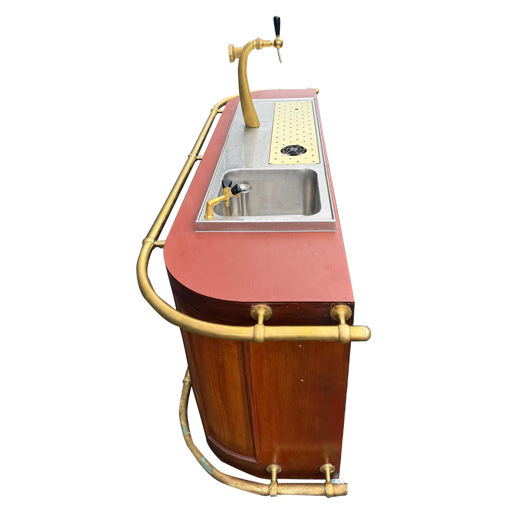 De bar heeft een houten ombouw met messing details en past perfect binnen luxe, klassieke en creatieve eventconcepten. Voor professioneel gebruik is de bar uitgerust met een rvs spoeltapblad met geïntegreerde glazensproeier, een biertap en een spoelbak. Hierdoor kan er snel en efficiënt gewerkt worden.
