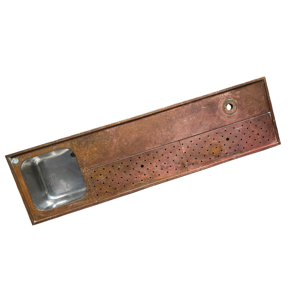 Ben je op zoek naar een karakteristieke blikvanger voor je bar of keuken? Dit robuuste koperen spoeltapblad combineert een authentieke uitstraling met functioneel gemak. Dankzij het hoogwaardige koperen materiaal ontwikkelt het blad een prachtig uitstraling, wat elke ruimte direct een warme, industriële sfeer geeft.